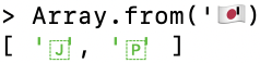 Flag emojis are grapheme clusters and composed of two code points – for example, the flag of Japan: